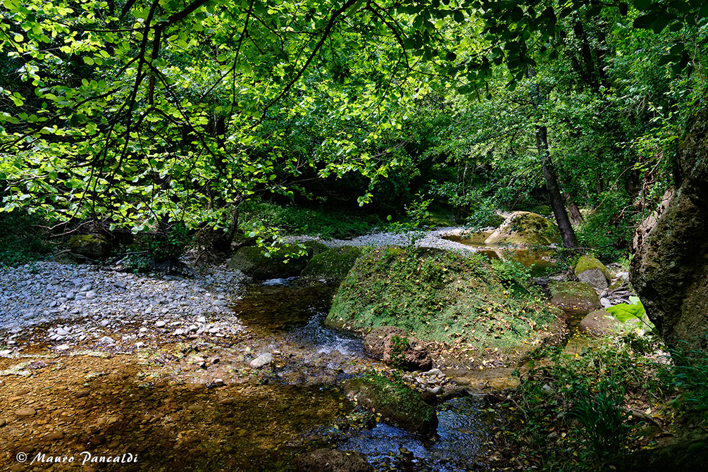 Corso del Torrente Vesca a valle della Sorgente Acquafredda.Corso del Torrente Vesca a valle della Sorgente Acquafredda.
