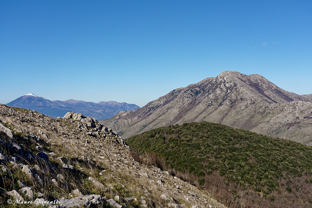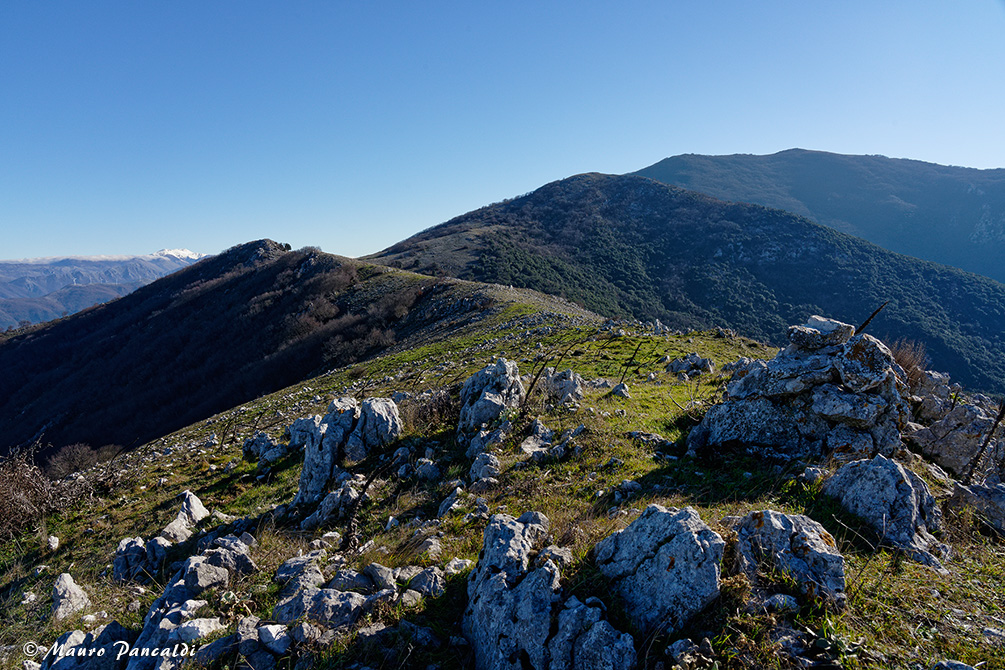 Dal Monte Cavallo vista sulla cresta di provenienza, alle spalle si erge il Monte Sammucro e sullo sfondo, con la cima imbiancata, il Monte Cairo.Dal Monte Cavallo vista sulla cresta di provenienza, alle spalle si erge il Monte Sammucro e sullo sfondo, con la cima imbiancata, il Monte Cairo.