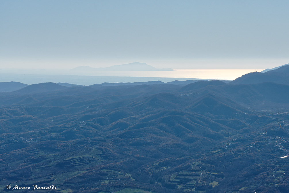 Tornati allo scoperto sulla Cresta Sud del Monte Cesima si scopre il mare con l’Isola d’Ischia all’orizzonte.Tornati allo scoperto sulla Cresta Sud del Monte Cesima si scopre il mare con l’Isola d’Ischia all’orizzonte.