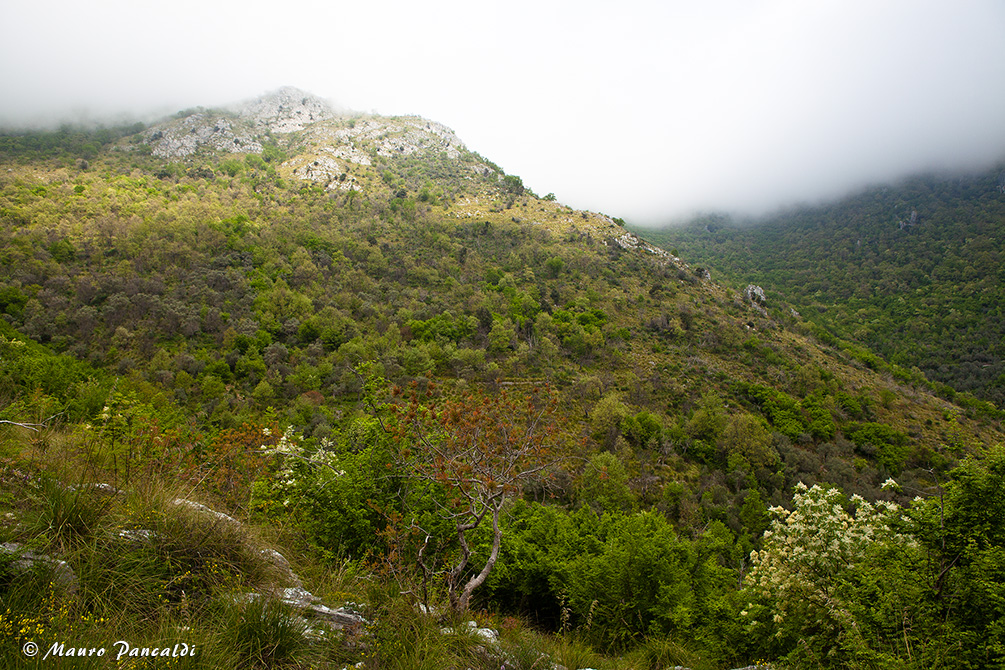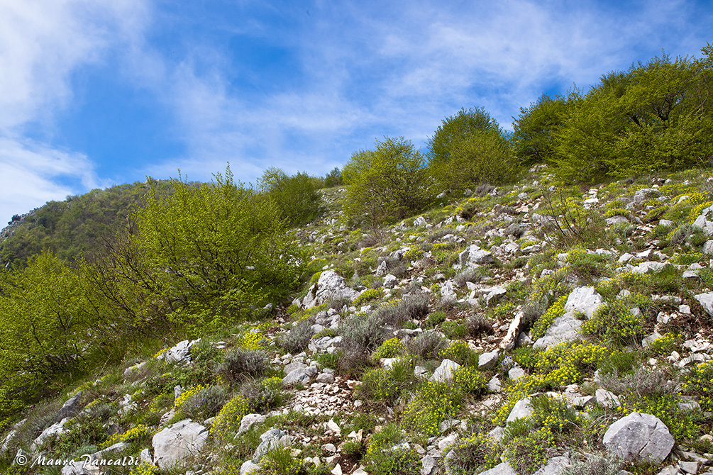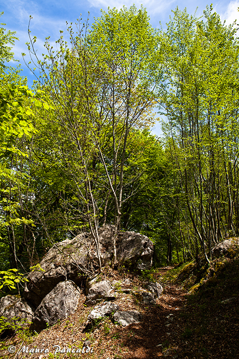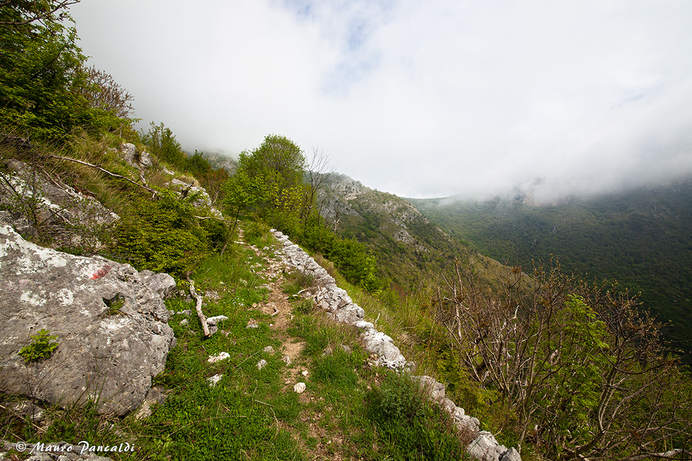 Scorcio lungo la mulattiera che traversa il versante settentrionale di Monte Santa Croce.Scorcio lungo la mulattiera che traversa il versante settentrionale di Monte Santa Croce.