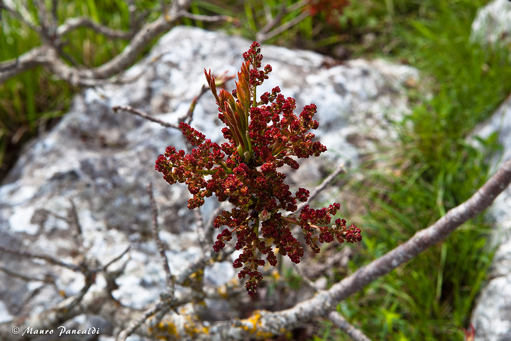 Fioritura di Terebinto o Scornabecco (Pistacia terebinthus) a Monte Santa Croce.Fioritura di Terebinto o Scornabecco (Pistacia terebinthus) a Monte Santa Croce.