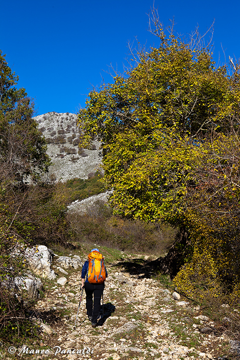 Ai piedi dei primi contrafforti rocciosi della cresta di Serra di Rocca Romana.Ai piedi dei primi contrafforti rocciosi della cresta di Serra di Rocca Romana.