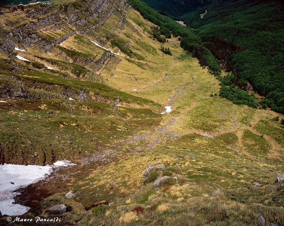 Dai Balzi dell’Ora spettacolare affaccio sul circo ai piedi del suo gradinato versante settentrionale.Dai Balzi dell’Ora spettacolare affaccio sul circo ai piedi del suo gradinato versante settentrionale.