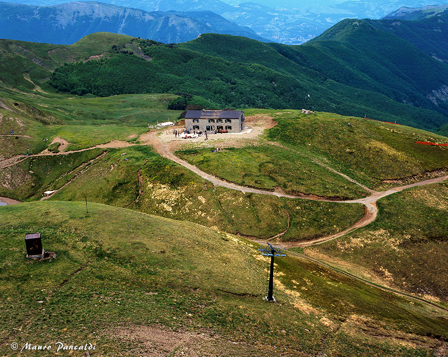 Il Rifugio Duca degli Abruzzi al Lago Scaffaiolo visto dalla vicina cima del Cupolino.Il Rifugio Duca degli Abruzzi al Lago Scaffaiolo visto dalla vicina cima del Cupolino.