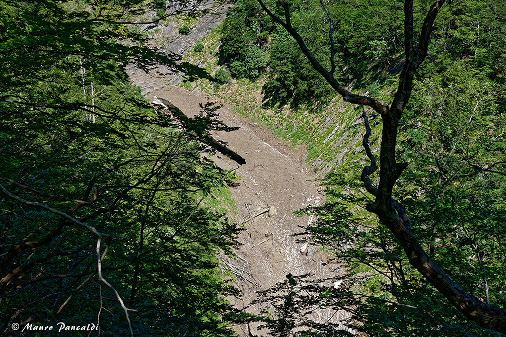 Attraversamento del fosso ai piedi dell’Orrido di Tanamalia, segnato dalle valanghe che precipitano dai Balzi dell’Ora.Attraversamento del fosso ai piedi dell’Orrido di Tanamalia, segnato dalle valanghe che precipitano dai Balzi dell’Ora.