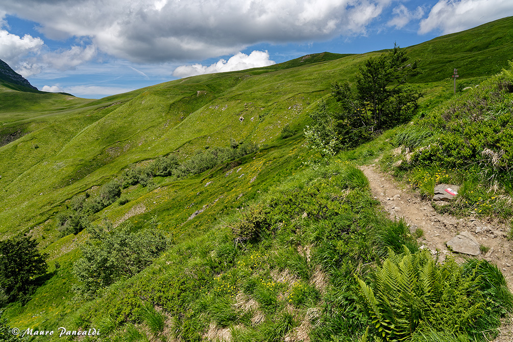 Un’esile traccia risale il crinale prativo (Direttissima al Corno alle Scale).Un’esile traccia risale il crinale prativo (Direttissima al Corno alle Scale).