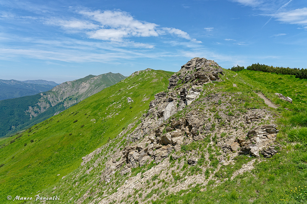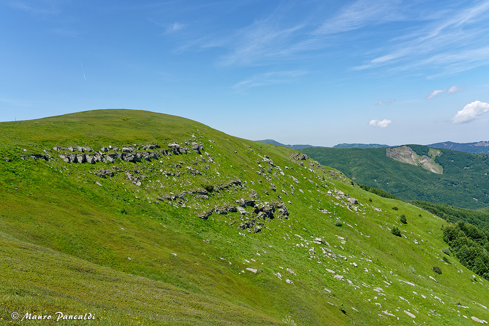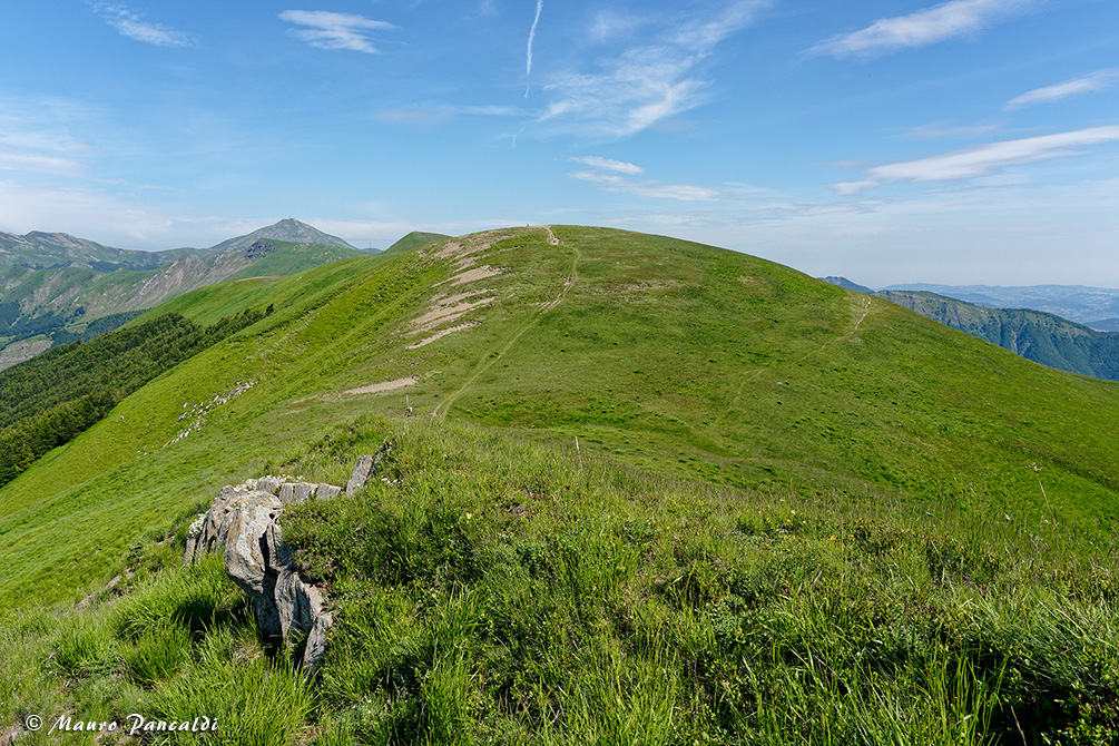 Il crestone prativo cala sul valico di Colle Piaggiacalda per risalire poi su i Balzoni.Il crestone prativo cala sul valico di Colle Piaggiacalda per risalire poi su i Balzoni.