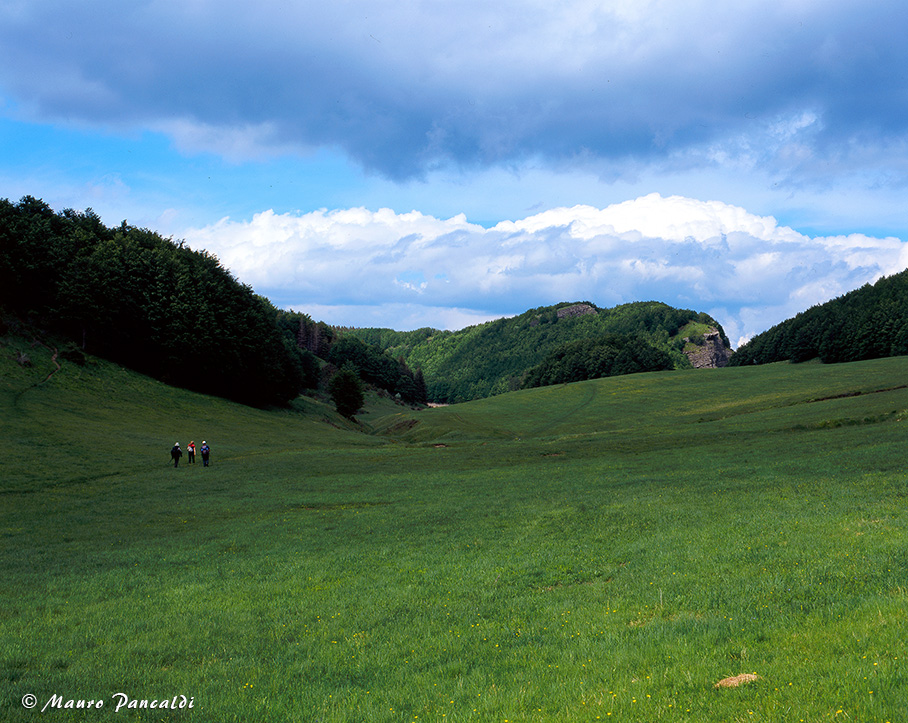I prati della Madonna dell’Acero appaiono come un’isola nel mare di boschi circostante.I prati della Madonna dell’Acero appaiono come un’isola nel mare di boschi circostante.