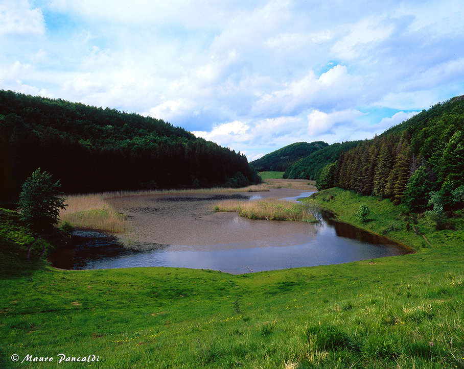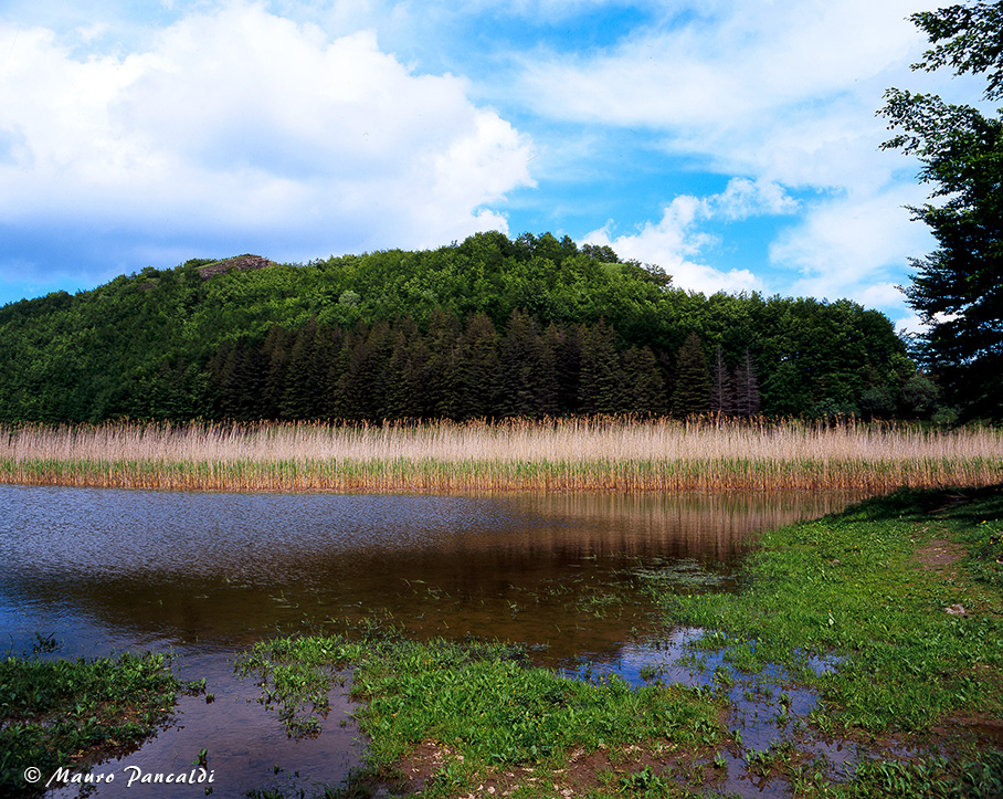 Il Lago di Pratignano occupato in buona parte da un vasto canneto, segno del suo avanzato stato di interramento.Il Lago di Pratignano occupato in buona parte da un vasto canneto, segno del suo avanzato stato di interramento.