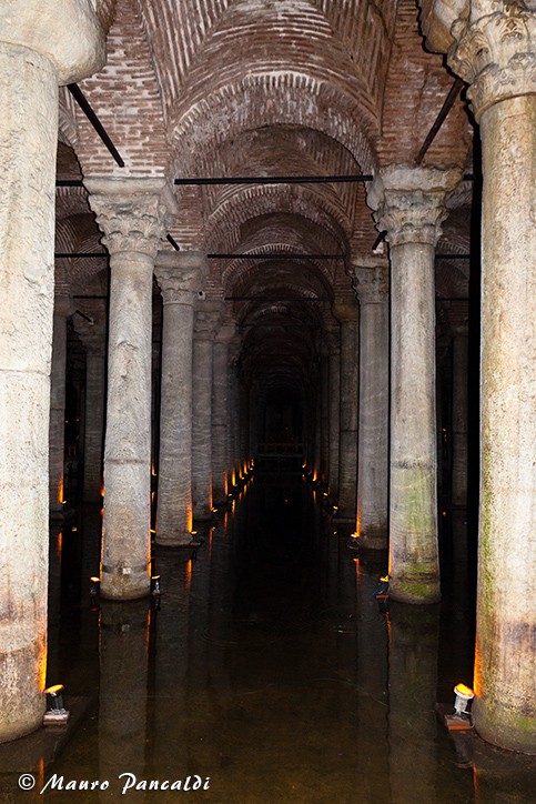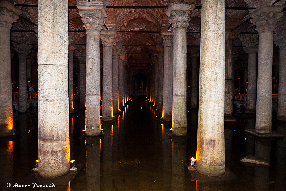 Interni dell’immensa cisterna romana di Sultanahmet a Istanbul, sorretta da ben 336 colonne e chiamata per l’appunto Cisterna BasilicaInterni dell’immensa cisterna romana di Sultanahmet a Istanbul, sorretta da ben 336 colonne e chiamata per l’appunto Cisterna Basilica