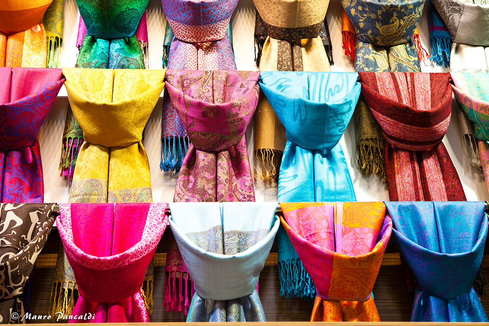 Esposizione di scialli di seta nel Gran Bazar di Istanbul.Esposizione di scialli di seta nel Gran Bazar di Istanbul.